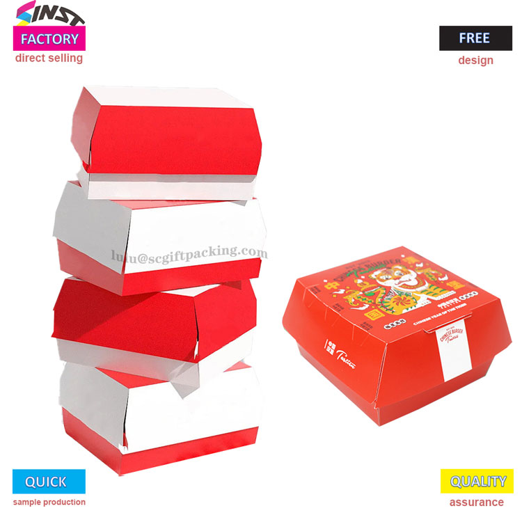 ஹாம்பர்கர் டேக்அவே உணவு பேக்கேஜிங் காகித பெட்டி - துரித உணவு உணவகங்கள், கேட்டரிங் மற்றும் டேக்அவுட் ஆர்டர்களுக்கு ஏற்றது.