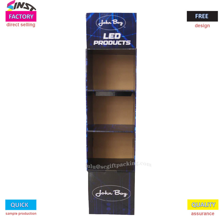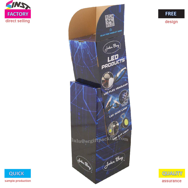 எல்.ஈ.டி தயாரிப்புகளின் குழப்பமான காட்சி மற்றும் வாடிக்கையாளர்களின் குறுகிய கால நேரம் குறித்து நீங்கள் இன்னும் கவலைப்படும்போது, பாவம் எல்.ஈ.டி தயாரிப்பு நெளி காகித காட்சி நிலைப்பாடு அதைத் தீர்க்க உதவும்! செங்குத்து செவ்வக அமைப்பு மற்றும் நான்கு திறந்த பெட்டிகள் எல்.ஈ.டி பெண்டபிள் ஹெட்லைட்கள், எல்.ஈ.டி ஒளிரும் விளக்குகள், எல்.ஈ.டி கிளிப் விளக்குகள் மற்றும் பிற தயாரிப்புகளுடன் பொருந்தக்கூடியவை. தயாரிப்புகளின் அடுக்கு காட்சி கூட்டமாக இல்லை, மேலும் வாடிக்கையாளர்கள் அனைத்து தயாரிப்புகளையும் ஒரு பார்வையில் காணலாம்! காட்சி அலமாரியில் உள்ள பிராண்ட் லோகோ நம்பிக்கையை பலப்படுத்துகிறது - அலமாரியில் இருந்து கவுண்டர் வரை, இது ஒரு "பேசும் காட்சி அலமாரியில்", இது வாடிக்கையாளர்களை நிறுத்தி தேர்வு செய்ய எளிதாக ஈர்க்கிறது!