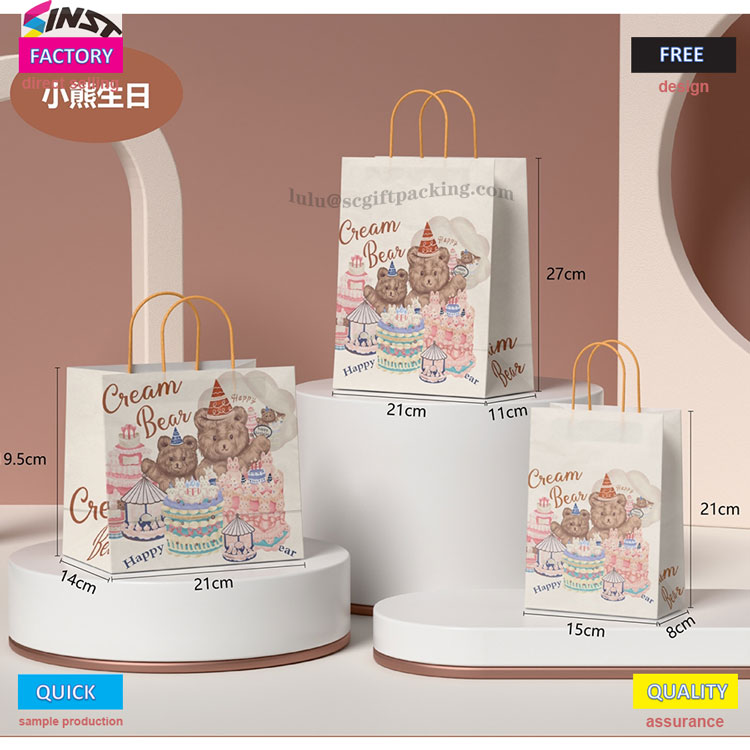 சமீபத்தில்,சின்ஸ்ட் பேக்கேஜிங் நிறுவனம் ஒரு பரிசுப் பையை அறிமுகப்படுத்தியது"கரடி பிறந்த நாள்" என்ற கருப்பொருளுடன். கையால் வரையப்பட்ட கார்ட்டூன் கரடி மற்றும் கேக் வடிவங்களுடன் இந்த பை அச்சிடப்பட்டுள்ளது, இது ஒரு சூடான மஞ்சள் கைப்பிடி கயிற்றால் இணைக்கப்பட்டுள்ளது, இது காகிதப் பையின் சுற்றுச்சூழல் நட்பு அமைப்பைத் தக்க வைத்துக் கொள்வது மட்டுமல்லாமல், பிறந்தநாள் சூழ்நிலையை பிரகாசமான வண்ணங்கள் மூலம் தெரிவிக்கிறது. இந்த பை முட்டை கேக்குகள், பொம்மைகள், பரிசு பெட்டிகள் போன்ற பல்வேறு பரிசுகளுக்கு ஏற்றது, இது ஒரு குடும்ப சேகரிப்பு அல்லது சில்லறை கடையாக இருந்தாலும், அது அடிப்படை பேக்கேஜிங் தேவைகளைப் பூர்த்தி செய்ய முடியும்.
