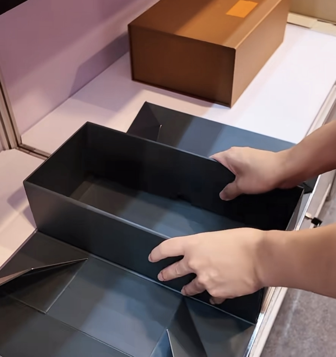 அடர் சாம்பல் அடிப்படை பதிப்பிற்கு கூடுதலாக, தயாரிப்பு கருப்பு பெட்டி மற்றும் பழுப்பு பெட்டியின் இரட்டை வண்ண விருப்பங்களையும் வழங்குகிறது. கருப்பு பதிப்பு மென்மையான மற்றும் உயர்தர மேற்பரப்பைக் கொண்டுள்ளது, அதே நேரத்தில் பழுப்பு பதிப்பு சூடான டோன்களுடன் அரவணைப்பை வெளிப்படுத்துகிறது. இரண்டு வண்ணங்களும் கையால் செய்யப்பட்ட பரிசுகள், கலாச்சார மற்றும் ஆக்கபூர்வமான தயாரிப்புகள் மற்றும் பிற காட்சிகளுக்கு ஏற்றவை. "ஒரு மடிப்பு திறந்த, ஒரு பத்திரிகை மூடு" - கருவிகள் தேவையில்லை, சட்டசபை 3 வினாடிகளில் முடிக்க முடியாது, ஆஃப்லைன் கண்காட்சிகள் மற்றும் சந்தை ஸ்டால்களின் பயனர்களுக்கான ஆன் -சைட் அமைப்பின் நேர செலவை வெகுவாகக் குறைக்கிறது.