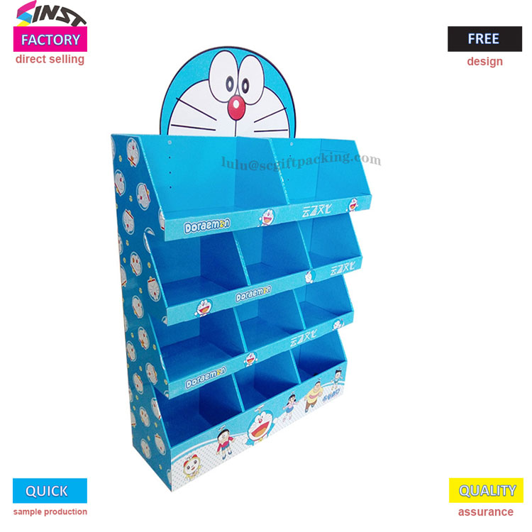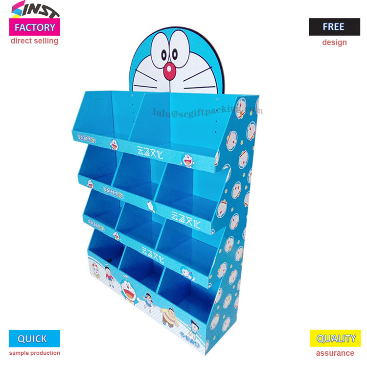 இந்த ஷாப்பிங் மால் பிஸ்கட் கார்ட்போர்டு டிஸ்ப்ளே ரேக் சூப்பர் மார்க்கெட்டுகள், வசதியான கடைகள் அல்லது பேக்கரிகளுக்கு ஏற்றது, இதில் பிரகாசமான நீல நிற டோன்கள் மற்றும் கார்ட்டூன் கிராபிக்ஸ் உள்ளன. சரிசெய்யக்கூடிய வகுப்பிகள் கொண்ட நான்கு அடுக்கு கட்டம் வடிவமைப்பு குக்கீகள், விருந்துகள் அல்லது சிற்றுண்டிகளின் நெகிழ்வான அமைப்பை அனுமதிக்கிறது, அலமாரியின் விண்வெளி செயல்திறனை அதிகரிக்கிறது.
